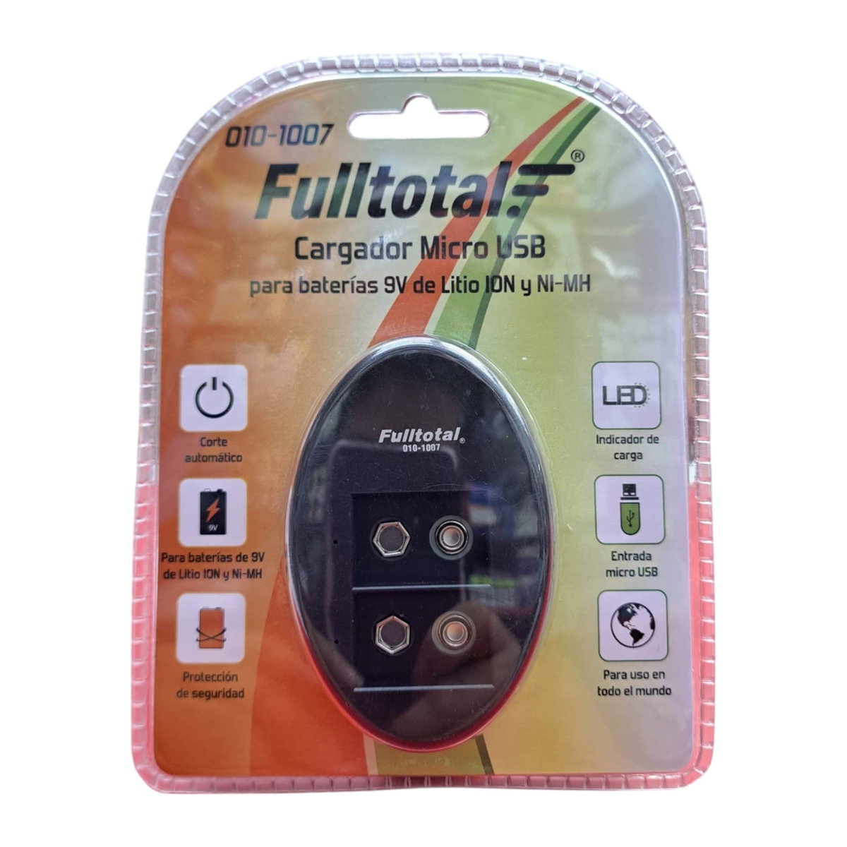 El cargador Fulltotal 010-1007 permite cargar baterías 9V recargables de forma segura y práctica mediante USB.
